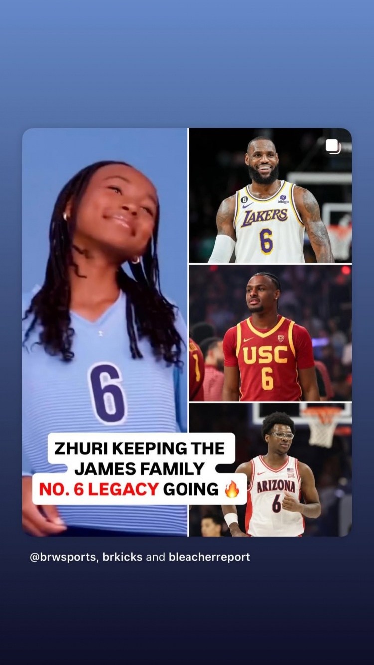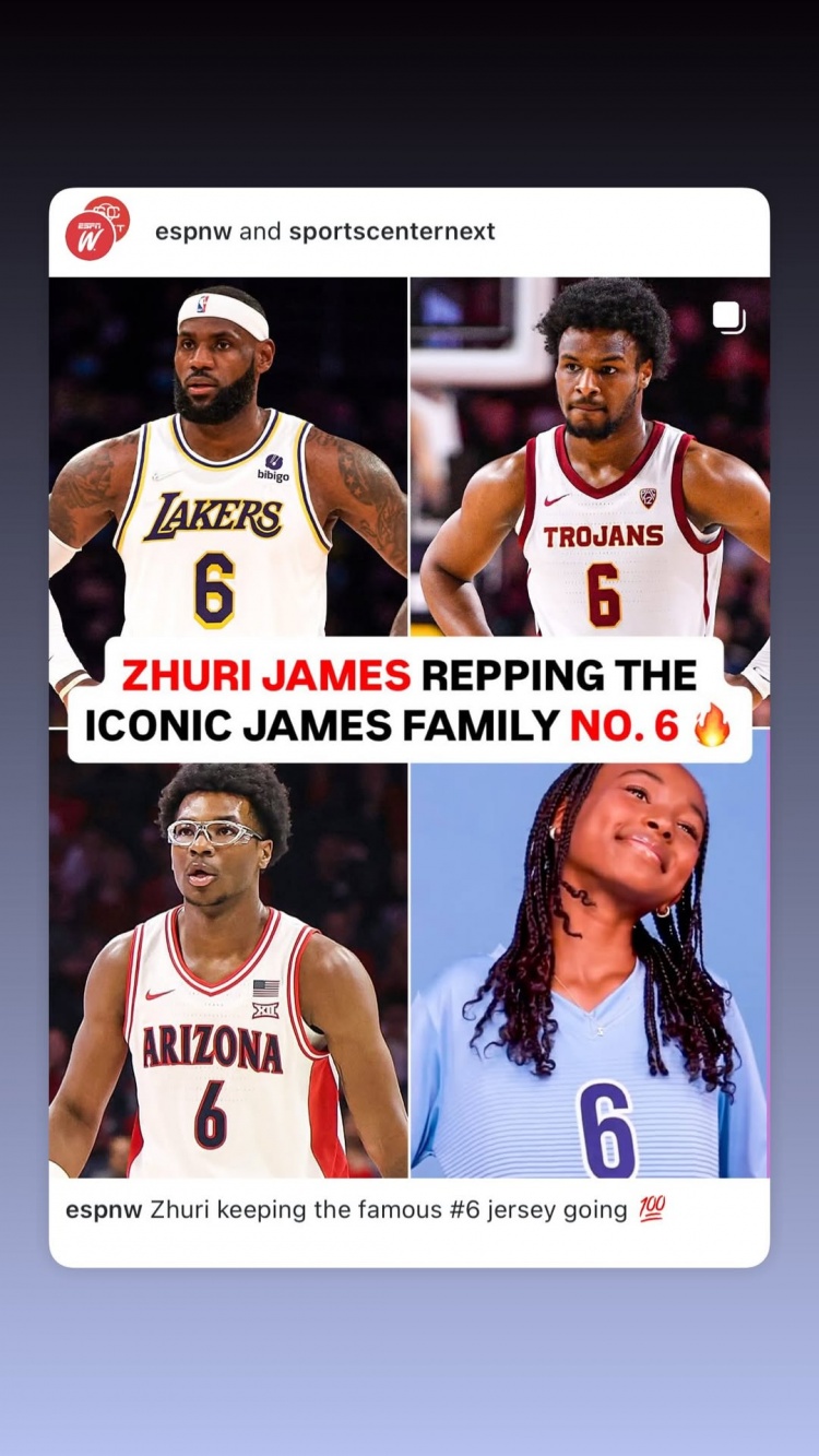 James đã chuyển tiếp một bức ảnh được giới truyền thông đăng tải về anh và ba đứa con mặc áo số 6. Hai con trai của James, Bronny và Bryce, đều mặc áo số 6 khi chơi bóng rổ ở trường đại học, còn con gái Zhuri của ông thì mặc áo số 6 khi chơi bóng chuyền ở trường. Bản thân James cũng từng khoác áo số 6 trong 6 mùa giải khoác áo Heat và Lakers.