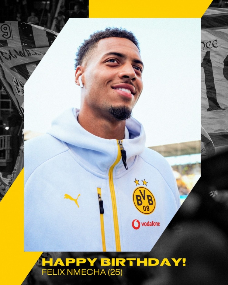Hôm nay là sinh nhật lần thứ 25 của tiền vệ Felix Nmecha của Dortmund. Quan chức Dortmund gửi lời chúc mừng sinh nhật anh.