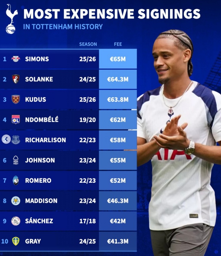Không đăng lại mà không được phép:FjoNews » Danh sách tuyển dụng đắt nhất của Levi Hotspur trong sự nghiệp của mình: Simmons đánh bại Solank để trở thành ngôi sao hàng đầu, và Son Heung-Min đã thất bại trong việc lọt vào top 10