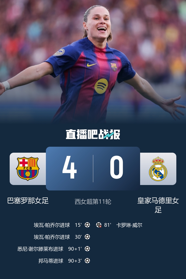 Đội tuyển bóng đá nữ Super League miền Tây-Barcelona 4-0 Đội bóng đá nữ Real Madrid. Cú nhấp đúp của Pacior và pha đóng góp của cầu thủ vào thay người Bonmati khiến Will mất điểm