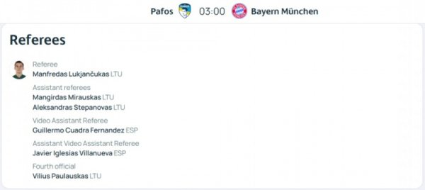 Bayern sẽ thách thức đội bóng của đội bóng Síp vào lúc 3 giờ sáng thứ Tư. Danh sách các trọng tài ch...